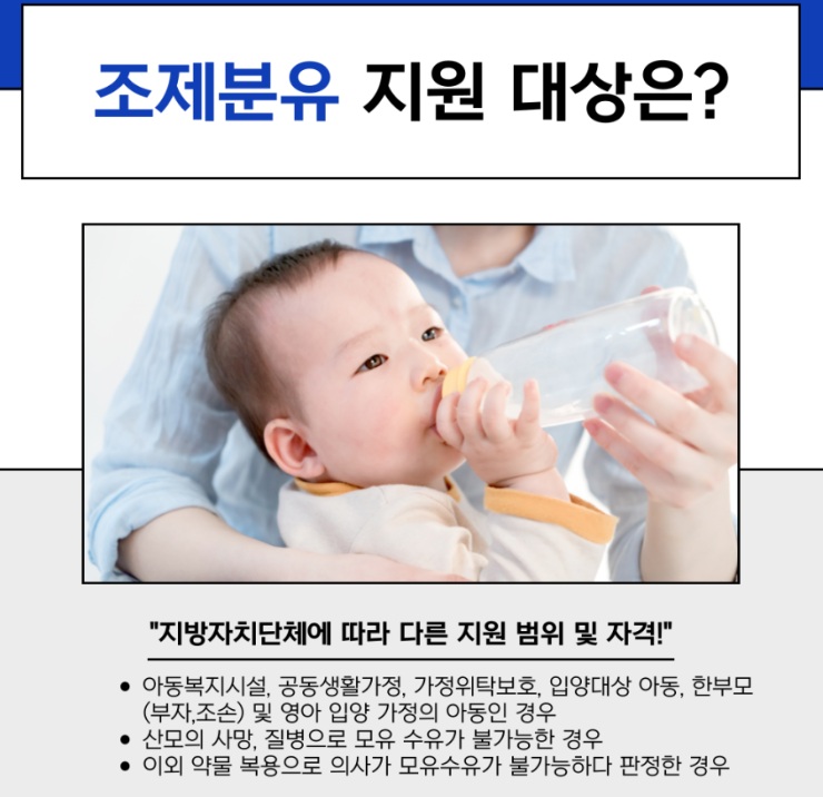 | 조제분유 | 월 110,000원 | 산모 질병·사망 등으로 모유수유 불가능한 경우 |
